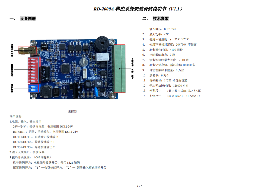 RD-2000A 梯控系統(tǒng)安裝調(diào)試說明書(V1.1)